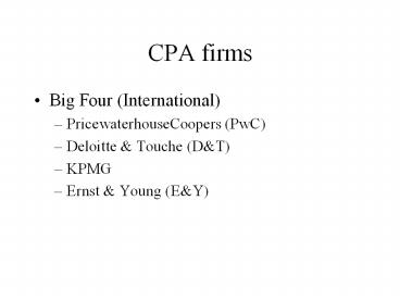 CPA firms Big Four (International) PricewaterhouseCoopers PowerPoint PPT Presentation