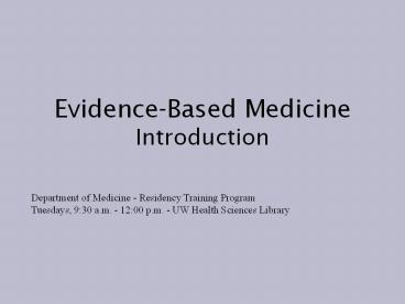 <Notice: Removed> Evidence-Based Medicine Introduction PowerPoint PPT Presentation
