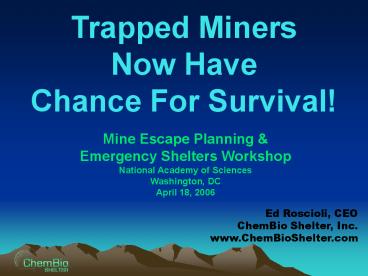 Title: Trapped Miners Now Have Chance For Survival! Mine Escape