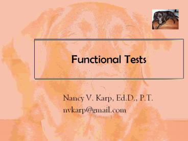 Title: Functional Tests