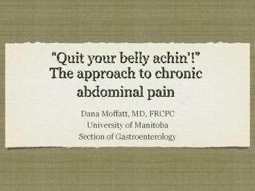 Title: The approach to chronic abdominal pain Dana Moffatt, MD