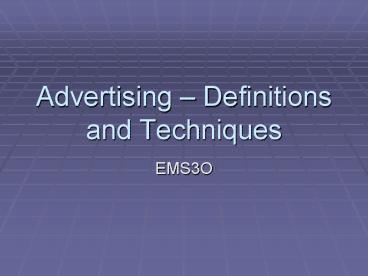 <Notice: Removed> Advertising – Definitions and Techniques PowerPoint PPT Presentation