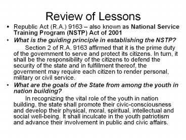 <Notice: Removed> Review of Lessons PowerPoint PPT Presentation