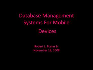 <Notice: Removed> Database Management Systems For Mobile Devices PowerPoint PPT Presentation