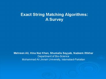 <Notice: Removed> Exact String Matching Algorithms: A Survey PowerPoint PPT Presentation