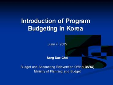 <Notice: Removed> Introduction of Program Budgeting in Korea PowerPoint PPT Presentation