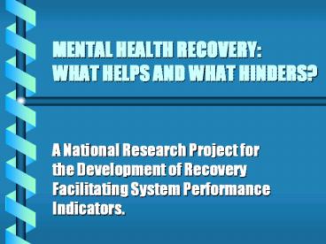 MENTAL HEALTH RECOVERY: WHAT HELPS AND WHAT HINDERS? PowerPoint PPT Presentation