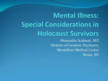 Title: Mental Illness: Special Considerations in Holocaust Survivors