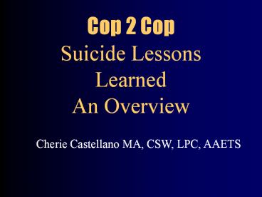 <Notice: Removed> Cop 2 Cop Suicide Lessons Learned An Overview PowerPoint PPT Presentation