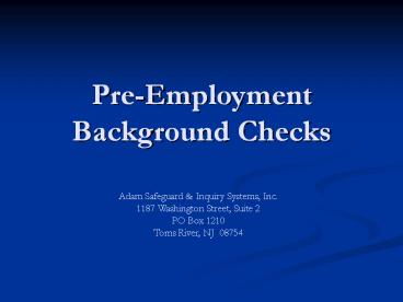 Title: Pre-Employment Background Checks