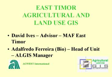 <Notice: Removed> EAST TIMOR AGRICULTURAL AND LAND USE GIS David Ives PowerPoint PPT Presentation