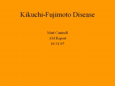 Kikuchi-Fujimoto Disease PowerPoint PPT Presentation