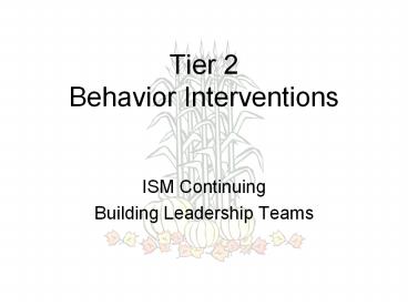 <Notice: Removed> Tier 2 Behavior Interventions ISM Continuing Building PowerPoint PPT Presentation