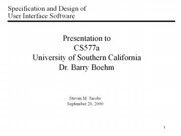 <Notice: Removed> Specification and Design of User Interface Software PowerPoint PPT Presentation