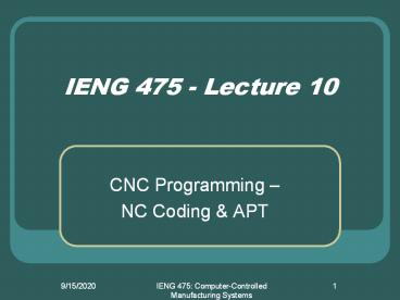 <Notice: Removed> IENG 475 - Lecture 10 PowerPoint PPT Presentation
