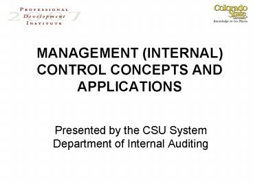 Title: MANAGEMENT INTERNAL CONTROL CONCEPTS AND APPLICATIONS