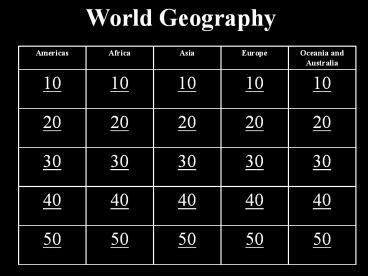 Title: World Geography - PowerPoint Jeopardy