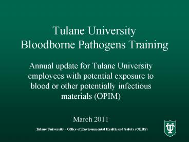 <Notice: Removed> Tulane University Bloodborne Pathogens Training PowerPoint PPT Presentation