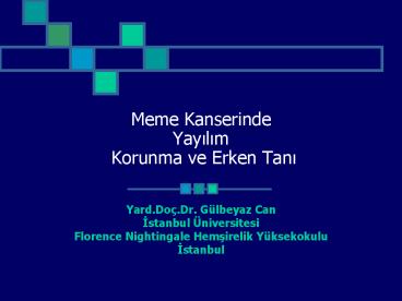 Title: Meme Kanserinde Yayilim Korunma ve Erken Tani