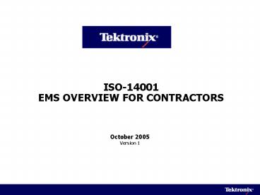 Title: ISO14001 EMS OVERVIEW FOR CONTRACTORS