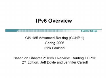 - Based on Chapter 2 IPv6 Overview, Routing TCP/IP