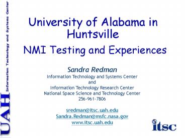 Title: University of Alabama in Huntsville NMI Testing and Experiences