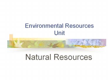 <Notice: Removed> Environmental Resources Unit PowerPoint PPT Presentation