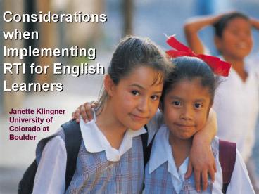 Title: Considerations when Implementing RTI for English Learners