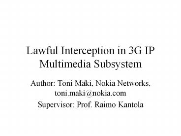 Lawful Interception in 3G IP Multimedia Subsystem PowerPoint PPT Presentation