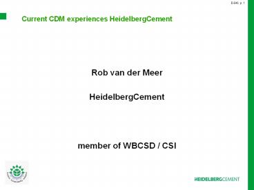 Title: Current CDM experiences HeidelbergCement