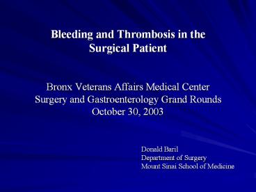 Title: Bleeding and Thrombosis in the Surgical Patient Bronx