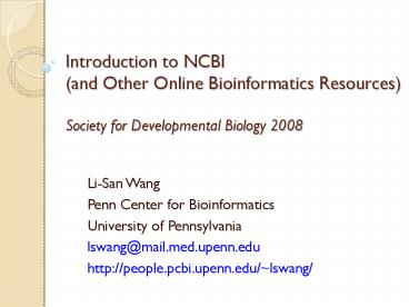 <Notice: Removed> Introduction to NCBI (and Other Online Bioinformatics Resources) Society for Developmental Biology 2008 PowerPoint PPT Presentation