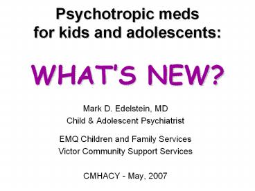 <Notice: Removed> Psychotropic meds for kids and adolescents: WHAT’S NEW? PowerPoint PPT Presentation