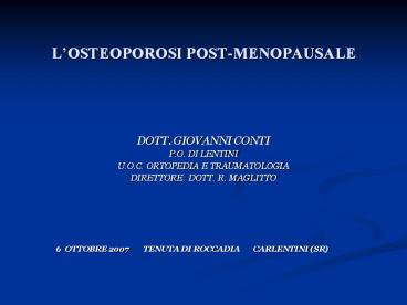 <Notice: Removed> L’OSTEOPOROSI POST-MENOPAUSALE PowerPoint PPT Presentation