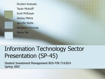 <Notice: Removed> Information Technology Sector Presentation SP45 PowerPoint PPT Presentation