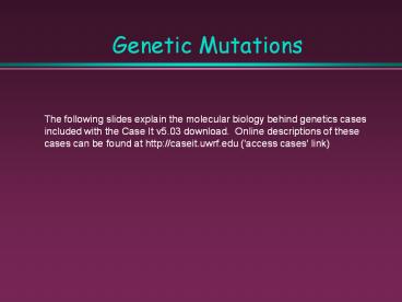 <Notice: Removed> Genetic Mutations PowerPoint PPT Presentation