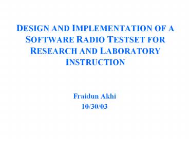 Title: DESIGN AND IMPLEMENTATION OF A SOFTWARE RADIO TESTSET FOR