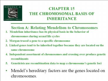 1CHAPTER 15 THE CHROMOSOMAL BASIS OF INHERITANCE