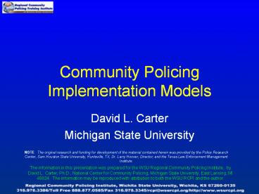 <Notice: Removed> Community Policing Implementation Models PowerPoint PPT Presentation