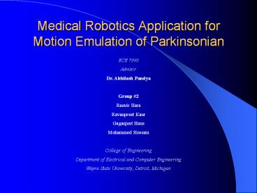 <Notice: Removed> Medical Robotics Application for Motion Emulation of Parkinsonian PowerPoint PPT Presentation