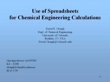 1Use of Spreadsheets for Chemical Engineering