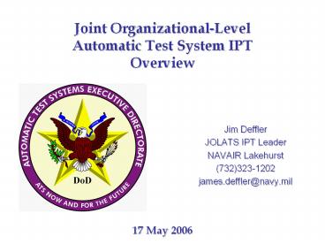 Title: Joint Organizational-Level Automatic Test System IPT Overview