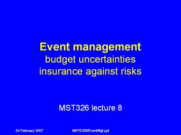 Event management budget uncertainties insurance against risks PowerPoint PPT Presentation
