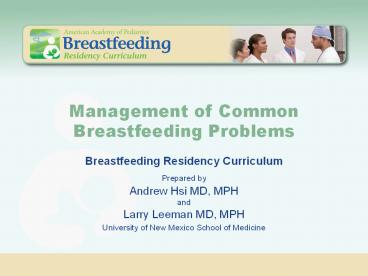 Title: Management of Common Breastfeeding Problems