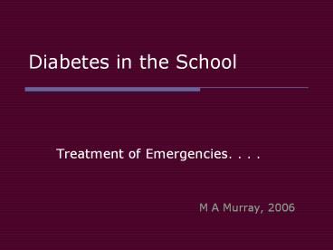 Diabetes in the School PowerPoint PPT Presentation