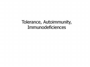 Title: Tolerance, Autoimmunity,