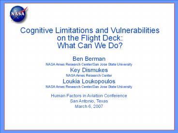 State University Key Dismukes NASA Ames Research