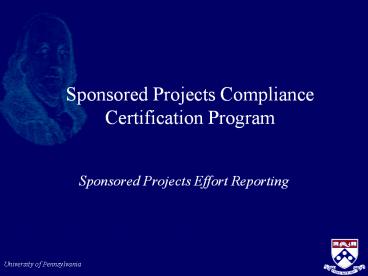 <Notice: Removed> Sponsored Projects Compliance Certification Program PowerPoint PPT Presentation