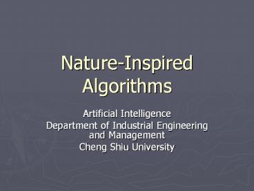 <Notice: Removed> Nature-Inspired Algorithms PowerPoint PPT Presentation