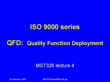<Notice: Removed> ISO 9000 series QFD: Quality Function Deployment PowerPoint PPT Presentation